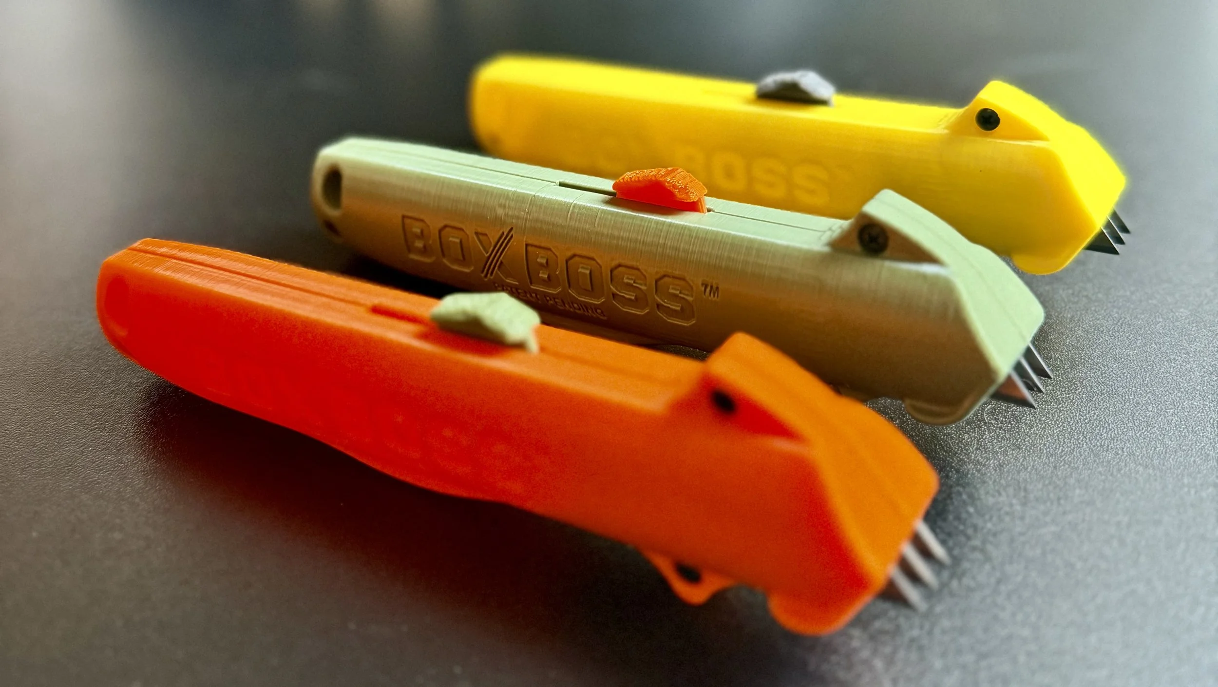 Thanks for helping us test the BOX BOSS — our early prototype of a box cutter that’s built different. Instead of the usual single blade, BOX BOSS features three short blades that slice through all types of tape with ease, without the risk of cutting into what’s inside.
